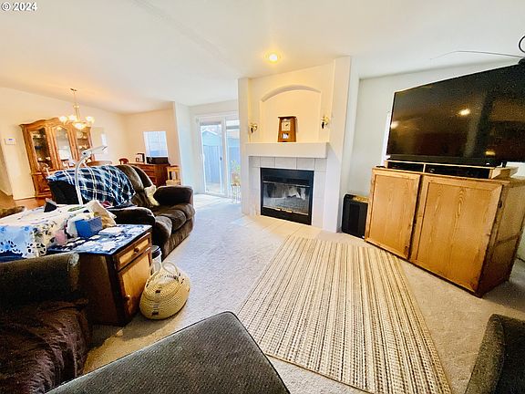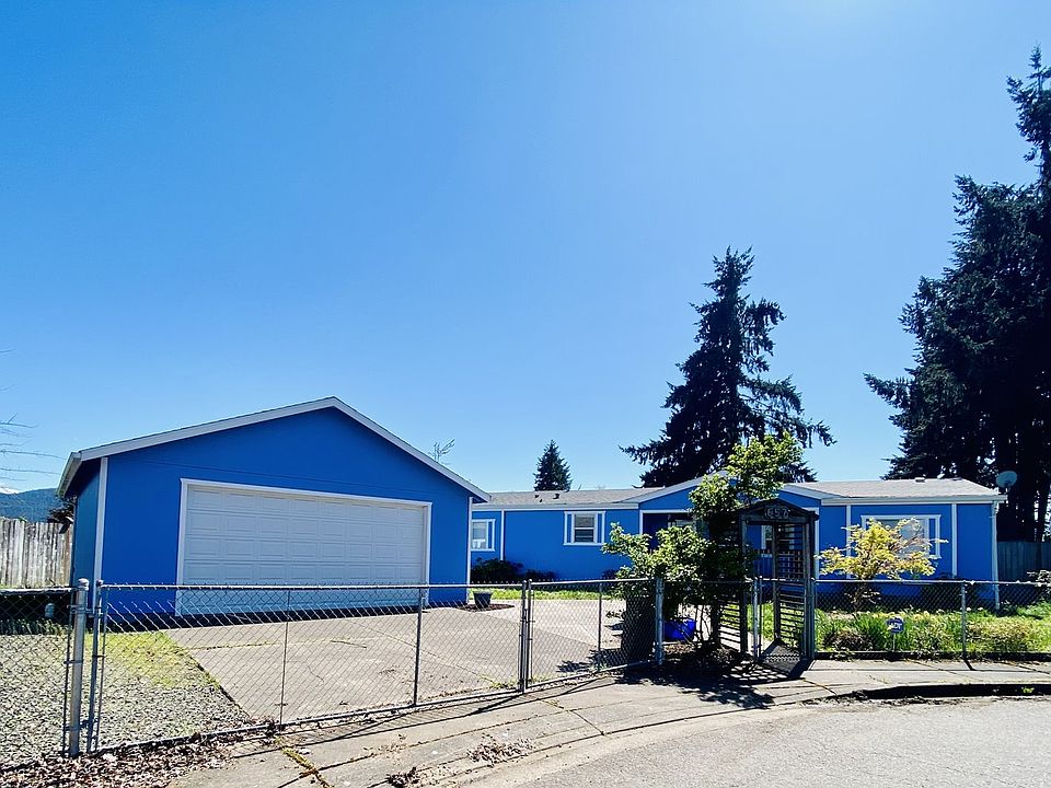 Great One-level Palm Harbor MFH with oversized detached garage/shop. The large living room has vaulted ceilings, woodburning fireplace, and is open to the dining area. Light door with access to the patio backyard. Wonderful kitchen with lots of cupboards and counterspace. The primary suite has a soaker tub, walk-in shower closet. Split floor plan with 2 bedrooms, hallway bathroom, and laundry room on the opposite side. The yard is fully fenced and the front has drip irrigation. The oversized garage is wonderful for storage or used as a shop. Heat pump heating and cooling. New roof and exterior paint in 2021. Welcome Home!