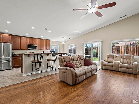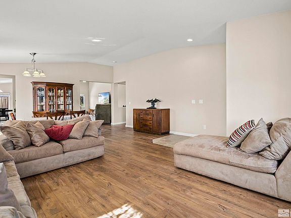 This single level home is located on a corner lot in a quiet neighborhood. This home features an open floor plan with 5 bedrooms and is just under 2800 square feet. There is laminate flooring in the living areas and hallway and an open kitchen that has granite counter tops. The interior has been freshly painted. Oversized 3 car garage with a large shed in back., Large Master Bedroom with large walk in closet. Master bath has a soaking tub with a separate shower. Large backyard features a patio area great for BBQ's and the front yard is low maintenance with xeriscaping.