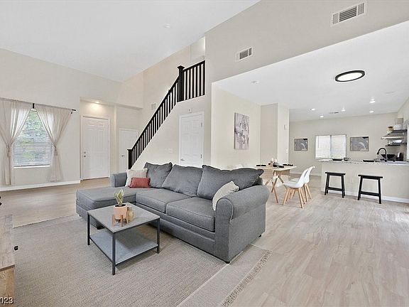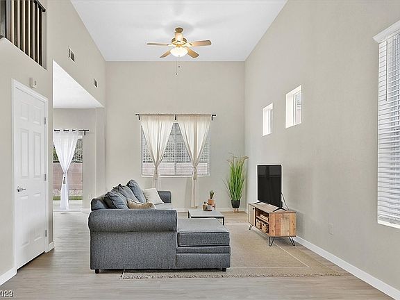 Move in ready and immaculately clean, this Summerlin home has been updated top to bottom! New vinyl plank floors, carpet, paint, countertops, master bath shower and back patio are some of the upgrades. A great location in Desert Bloom with a private community pool and direct access to the Cottonwood Canyon Trail park. Close proximity to all the shops and restaurants in Downtown Summerlin, Costco, Las Vegas Ballpark and Golden Knights practice facility. Renting is permitted making this a great investment property as well.