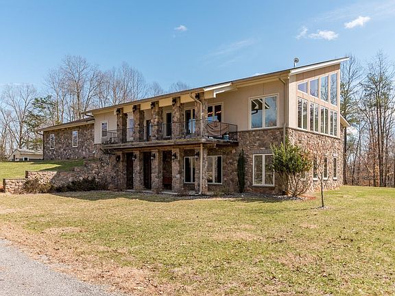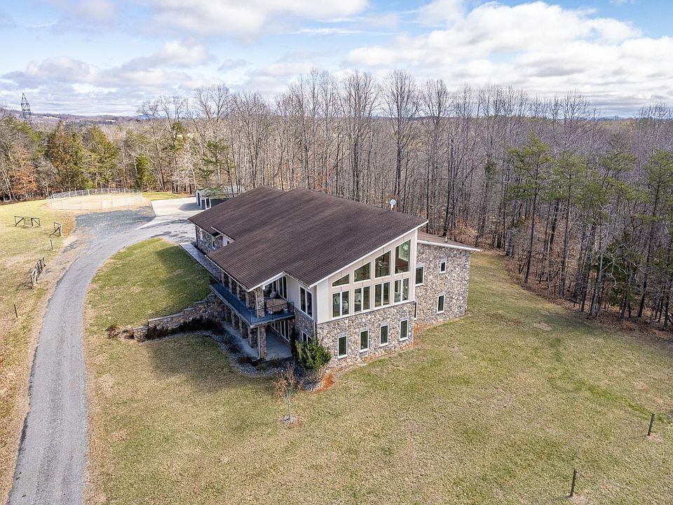 Don't miss this rare opportunity to own an exquisite estate spanning 123 acres in the heart of the beautiful Blue Ridge Mountains, 15 min to Sweet Briar & 30 min to Liberty University. This stunning 4 bedroom 5 bath home boasts 6,416 finished sqft of luxury features including corian countertops, massive walk in pantry, media room, two laundry rooms, two primary suites, 2 car garage, top of the line home security system, 28' tall stone double sided fireplace that connects to the sun room with gorgeous mountain & pasture views. The primary suite includes an attached office, a grande ensuite bathroom with two toilet closets, massive tiled shower, & walk-in closets. On the estate is a 2 acre pond, 2000' of Buffalo River frontage, riding rings, & multiple pastures with electro wire horse fencing. The barn features 7 stalls, 2 tack rooms, indoor wash bay, arena, and a large entertainment addition currently used for Church. Please reach out for additional features list.