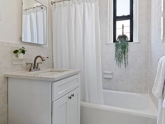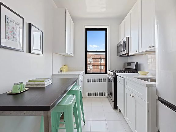 BIG and BRIGHT! 657 East 26th Street #6B is a large, pre-war, two bedroom apartment with dining area. Measuring a massive 1,100 square feet it is perched above the treetops on the top floor of a pristine building near Bedford Avenue. The sunny and welcoming space is in excellent condition and features a recently renovated kitchen and bathroom. The original floors are in great condition and all the walls were recently painted. Pack your bags this unit is ready for its next owner! The living area begins with a gracious entryway where you will find three large closets. A large dining room flanks the enormous living area where a possible third bedroom could be added (see alternate floorpan). The eat-in galley kitchen will please any home chef with its stainless steel appliances (including dishwasher and microwave), white shaker cabinets, and quartz countertops. All of this plus a large east facing window to keep things bright and cheery. The primary bedroom is large enough to do double duty by housing an office space or sitting area and has two large north facing windows. Here you will find the apartment's fourth closet. The recently renovated, bright bathroom is nicely located in between the two bedrooms. The second bedroom could fit a full size bed and features two exposures - north and east. Located in one of Brooklyn's most elegant pre-war buildings, 657 East 26th Street is nestled at the crossroads of Ditmas Park and Victorian Flatbush. The super low maintenance of $616 per month includes taxes, heat, hot water, live-in super and porter. There is common storage and bike storage to rent with laundry in the basement. Boasting a huge common garden and favorable sublet policy this property is not to be missed!