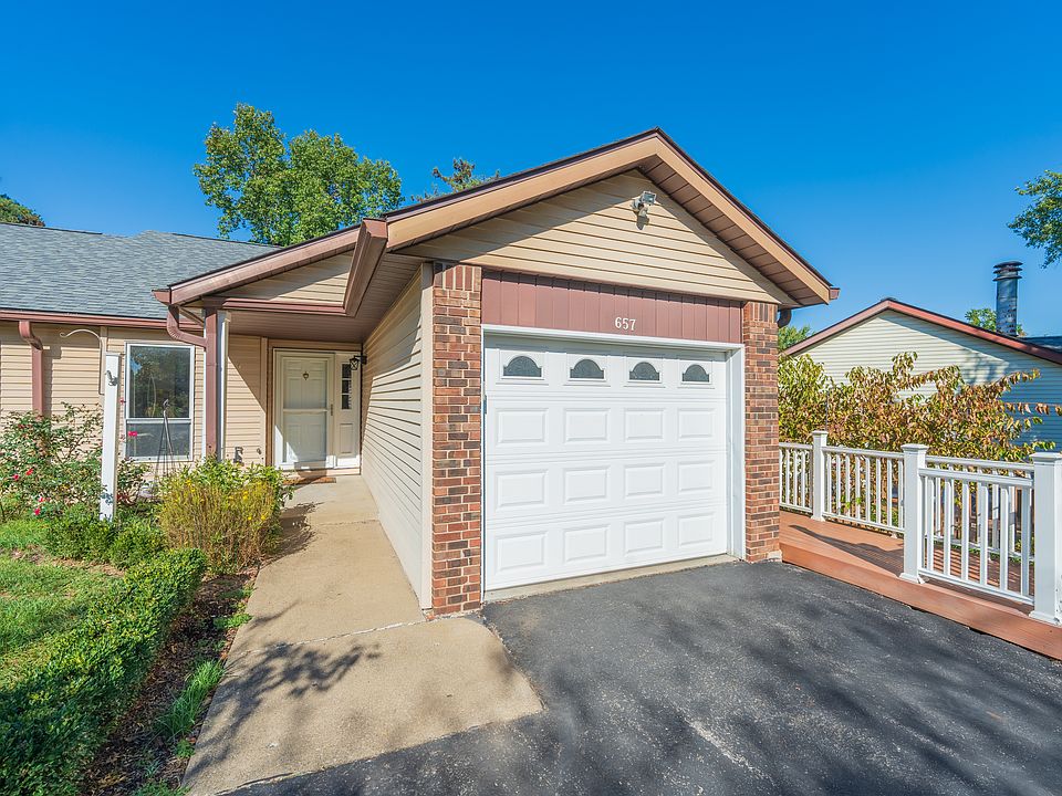 Rare find! This ranch condominium over a full walkout basement includes a one-car garage and amazing outdoor spaces. The main level features vaulted ceilings, hardwood flooring, a well equipped kitchen with stone countertops and tiled backsplash, 2 bedrooms and access to a large open deck. The lower level features a large recreation space, additional flex space, a full bath, laundry and access to a 2nd large deck. The two decks are connected by stairs. Added bonus - a neighborhood swimming pool!