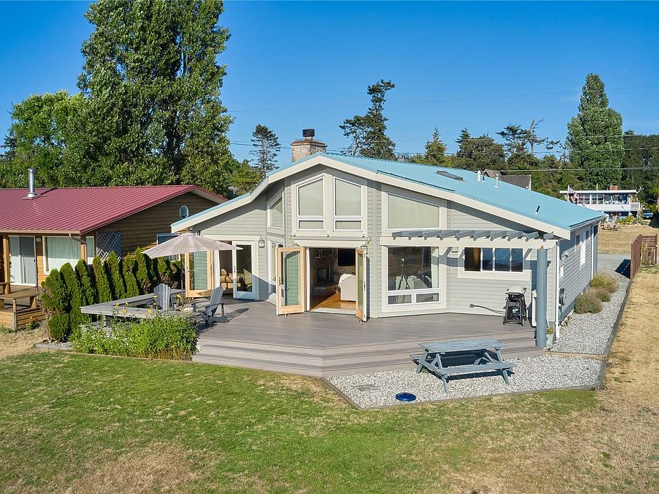 Waterfront at its best- live in this beautiful west side home located on desirable Freeman Lane. Exceptionally well maintained four-season rancher that features 3 beds, and 2 baths that were recently updated. Open concept living with ocean views and french doors onto an expansive deck with composite decking. Upgraded finishes throughout, fir floors, high-end appliances, a river rock fireplace, and a built-in speaker system. Brilliant floor plan, vaulted ceilings in the main with expansive windows to take in the spectacular sunsets, and a large kitchen great for entertaining. Go fishing or crabbing from your doorstep. Don't miss out on this turn-key property!