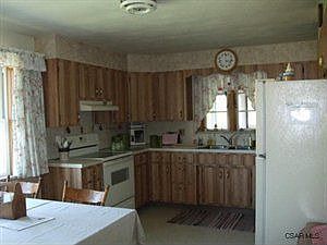 Nicely maintained, lovely hardwood floors, eat-in kitchen, enclosed breezeway. Heat oil hot water, wood and coal. Workshop in basement, work bench in garage. Great view.