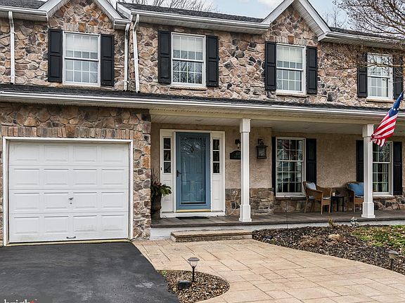 4 Bedroom, 2.5 bath stone front colonial in desirable Neshaminy Pointe development in the Blue Ribbon Award Winning Neshaminy School District. Home has hardwood flooring in the foyer, kitchen, office and dining room perimeter. Kitchen has breakfast area, stainless steel appliances, granite counters, breakfast bar and sliders leading to a screen-in room that has steps leading down to back yard. Family room has gas fireplace with insert and laminate floor. All 4 bedrooms have ceiling fans with light packages. Main bedroom has two 10x6 walk-in closets and updated bathroom. Finished walk-out basement area is 28'x26' with a bar and built in refrigerator. Unfinished basement area has plenty of storage room and is 20'x19'. Front service walk and front patio are stamped concrete. Screen-in room is off the kitchen and there is a Trex deck off family room. Both are great for entertaining and have a great scenic view of the woods surrounding the Neshaminy Creek. Economical natural gas is for the 2 fireplaces, stove, heat and hot water heater. Neighborhood is wired for both Verizon and Comcast. Garage has a washer hook-up. Call today and schedule a visit, you'll be impressed!