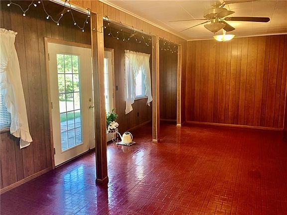 Dollhouse with covered front porch on a little over an acre of land in the country. This home showcases a Large Family Room on the Main Level with French Doors to the rear Patio. Enjoy a large separate Dining Room for mealtime. The arched doorway between the Dining Room and Living Room compliment the nostalgic charm. All Bedrooms are upstairs and showcase hardwood floors. The Bathroom is also on the Bedroom Level. Lots of Storage in the Basement with access steps to the outdoors. Workshop/Shed has a greenhouse outside the entrance area. The fenced garden in the upper rear yard is a great place to plant and harvest summer crops. Super location with access to main roads, shopping, restaurants and more. This is a great starter home.