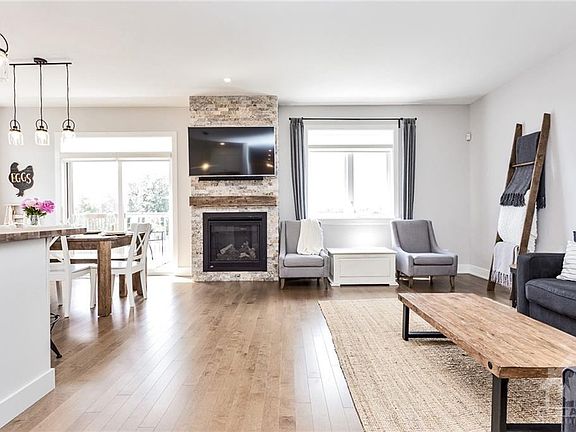 Fabulous END UNIT on PREMIUM LOT w/ WALKOUT! Immaculate 3 bdrm, 4 bath home with NO REAR NEIGHBOURS and COUNTRY VIEWS! From the interlock front walk, you're greeted with 9' ceiling, wide foyer and large pwdrm. Follow the extra-wide front hall to the open concept, sunlit kitchen and lvgrm. $40k in upgrades incl GAS STOVE, QUARTZ counters in kitchen and bathrms, MAPLE HRDWD, GAS BBQ hookup, the list goes on! Host guests in the large dining area adj. to the cozy gas fp or outside gazing at Carp's scenic countryside. Follow the hrdwd stairs to your oversize prmbdrm, with deep WIC and stunning ensuite w/ WIShwr. The 2nd level is complete with 2 add'l bdrms (2nd WIC), stylish main bath and laundry room. The bright walk-out basement has 4th bath, an office nook (possible 4th bdrm) and large rec area. Step out onto the STONE PATIO w/ HOT TUB and BUILT-IN FIRE TABLE. Offers to be presented @3pm on Tues, July 13, however Seller reserves the right to review and may accept pre-emptive offers.