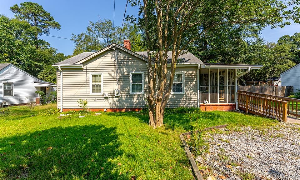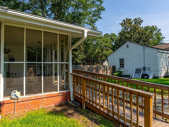 Cute and Cozy! This sweet bungalow checks so many boxes. It has vinyl windows, newer carpet, a walk-in soaking tub, and a large laundry room with plenty of space for an office or second living area. Outside you'll find a screened in porch, gutters with debris guard, mature trees, and a moisture barrier in the crawlspace. In addition, there is a detached garage in the rear and a separate outbuilding. Make sure you wander around the backyard to enjoy the palm trees, shade trees, and creek at the rear of the property. This well-maintained home is selling "as is." Seller requests cash or conventional financing. According to Floodprice.com, typical flood insurance for property is $442 annually.