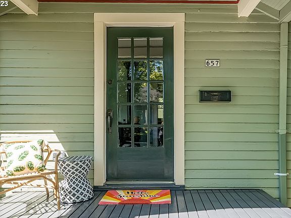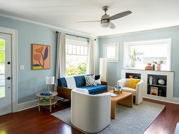 Say "why hello, there" to this classic PDX bungalow, beautifully maintained and with loads of valuable updates, all in a prime location near the Dekum Triangle in Woodlawn! Recently refinished fir floors liven up the living room, and the wood burning stove adds a touch of those romantic cabin vibes. The modern kitchen with stainless steel gas appliances, farmhouse sink, and subway tile backsplash are complemented by sexy, rustic exposed brick, resulting in a stylish, fun kitchen. An adorable dining nook is a welcome perk, too! Two good-sized bedrooms with generous windows for A+ natural light, and a really lovely updated bathroom with clawfoot tub for relaxing soaks. The unfinished basement offers excellent storage space, and laundry. Spacious fenced backyard with raised beds and a pear tree will be a fun hangout this summer, and both front and back decks are freshly painted. Such a prime NE Portland location, too, in the friendly Woodlawn community, with a bike score of 99, and close to transit, Woodlawn Coffee Shop, schools, Kenton neighborhood, Ps & Qs Marketplace, and much more. [Home Energy Score = 7. HES Report at https://rpt.greenbuildingregistry.com/hes/OR10214361]