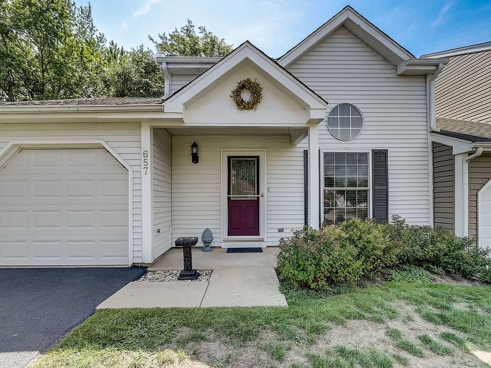 Ready for your next investment? Look no further than 657 Nantucket Way in the heart of Nantucket Village! This 1 bedroom, 2 bathroom townhome boasts vaulted ceilings and a semi-open floor plan on the first floor showcasing a cozy living space with a fireplace and dining room. Head upstairs to a sizable loft which can easily convert into a second bedroom! The primary bedroom provides plenty of privacy from the rest of the home and the walls will be painted a modern grey. Enjoy a beautiful patio space, private fenced in yard, and an attached garage with a newly seal coated driveway for private, off-street parking. Nantucket Village is conveniently located near Route 176 with shopping, restaurants, parks and forest preserves just a stone's throw away. With a little sweat equity, this townhome can be the perfect rental or starter home! Recent updates include the furnace and HVAC (2020), water heater (2020), and fresh paint to come. Seller will provide a $500 credit towards new flooring. Home is being sold as-is. This one won't last!