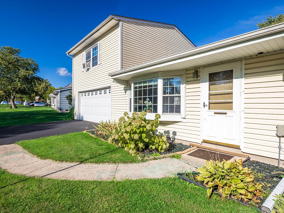 Beautiful, lovingly maintained, and move-in ready! This spacious home offers 3 bedrooms, 2 full baths, and a versatile loft that can be a fourth bedroom, primary suite, office, or bonus space above the garage. Situated on a quarter acre lot with plenty of space between neighbors, the fenced backyard is an entertainer's dream witha wooden deck, shed, garden area, fruit trees, and a cozy fire pit. The main level features a bright eat-in kitchen with vinyl flooring, ample cabinetry, and all appliances included, plus alaundry room that opens to both the backyard and the 2.5 car garage. The living room shines with a bay window andcarpeting, while all 3 bedrooms have durable LVP flooring. Freshly touched-up paint and professional landscaping make this home feel like new. Upstairs, the finished loft space includes a 3/4 bath, spacious living and dining area with a wood-burning fireplace, and aprivate deck overlooking the backyard, perfect for in-law living or flexible bonus space. Recent updates include a 2020 hot water heater, main evel furnace 6 years young, upper-level furnace 4 years young, main level AC plus a window unit for the upper level, roof 5 years young, and siding and windows 8 years young. Additional attic storage is included, and the HOA covers snow plowing, garbage, and street lighting.