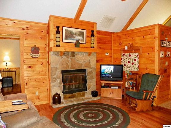 Nice cabin with GREAT floor plan. Cabin boasts 2 Master Suites, both with gas log fireplace and whirlpool tub. Relax in the hot tub on the screened-in porch and enjoy the solitude. Close to town and all the action, yet feels private with wooded setting. Already established on rental program, but would also make a great permanent residence.