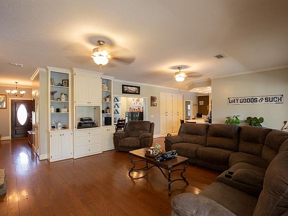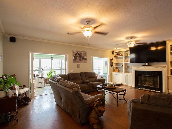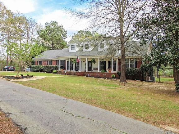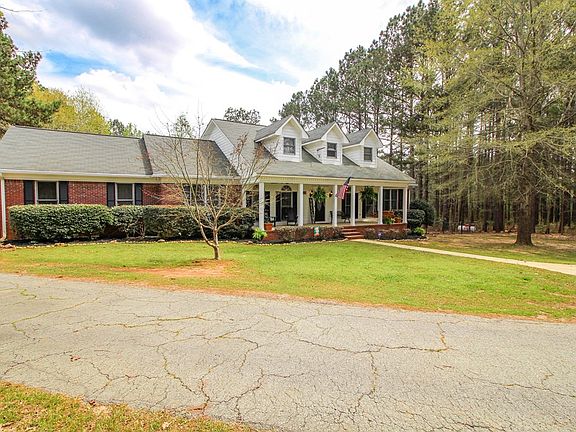 Custom-built all-brick home on 14.89 acres in BEAUTIFUL Harris County! Kitchen features tons of cabinet space and breakfast bar. Formal Dining Room with stunning chandelier. Great Room with Fire place & built-in shelves. Great Room opens up to nice sized sunroom with amazing view of yard! HUGE laundry room, Owner's Suite, & 2 bedrooms on main. Owner's Suite with walk-in closet & attached ensuite bath. Ensuite Bathroom features separate tub & shower and double vanities. Upstairs is 2 bedrooms (One Room could be used as a bedroom, office, or even playroom!) , 1 full bath & walk-in attic. Attached garage, entry gate & wrap around driveway.