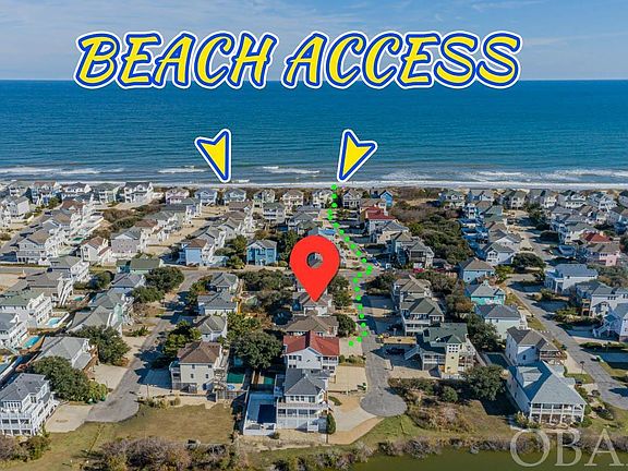 Your very own "Ocean Paradise" awaits you in the heart of Corolla! Enjoy views of the lake in Ocean Sands in this tastefully appointed home at the beach located between the lake and the ocean in the much desired Section O. The popular open concept and reverse floor plan features an upper level with expansive great room perfect for a crowd to comfortably gather, fully equipped kitchen with breakfast bar, dining area that opens to the large sun deck, primary ensuite bedroom, ships watch with cozy seating, plus a screened porch overlooking the private pool. A powder bath is conveniently located on the landing as you head down to the mid-level where you will find four spacious bedrooms two of which are ensuites and open to a large covered deck, the other two bedrooms share a full hall bath. The ground level offers a playful bunk room, full bath, and features a game room outfitted for fun with a pool table and a foosball table! The wet bar and 2nd refrigerator are so convenient for fun days and nights lounging around the pool and hot tub. With the beach access approximately 670 ft. away and community pool, tennis and pickle ball within walking distance you’ll have a hard time deciding where to spend your time! The Owners have lovingly updated the home with a new refrigerator in the kitchen, new flooring in most common areas to include the staircases, all new river rock landscape, new hot tub, new pool cover, new poolside lounge chairs, new heat pump and air handler and a brand new 65" TV in the great room. Please see a full list of improvements available in Associated Docs. Centrally located near the attractions of Corolla, great local shops, restaurants and golf course, this is the perfect location for your vacation rental property or second home at the beach!