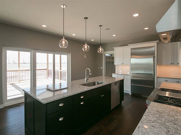 Exquisite, fully custom two-story home on walk-out lot in east side Iowa City. Pristine kitchen with premier Bosch, SubZero & Wolf appliances. Featuring stone counter tops, wood flooring, tile backsplash, pendant lighting, pantry, and high-end cabinetry. Top amenities with high-end finishes throughout, featuring 3-zone climate control system, gas lines run for future fire pit and grill. Upstairs spacious master suite with trey ceilings, dual vanity, tiled shower, walk-in closet, and access to laundry room.