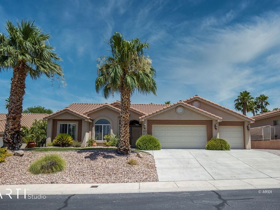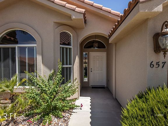 Welcome to 657 Sunset Drive in the gated community of Summercrest II. This open and inviting floor plan with 3 Bedrooms 2 Bath 3 Car Garage is just what you're looking for and a Must See! It's been very well taken care of and you'll notice that from the minute you walk through the front door. The Vaulted Ceilings, Arch Accents and Large picture windows make this 1621 sq ft bright with natural light. The Kitchen is nicely appointed with upgraded granite counters, 2 year old Stainless Steel appliances, beautiful cabinetry, pantry and Breakfast Island. You will find tile in the Kitchen, Bathrooms and Laundry room and carpet in the Living area and Bedrooms. The warm paint tones of this amazing home are warm and neutral. Ceiling Fans will be found in every room. The 3 Car Garage has Cabinets a sink and epoxy floors. The outdoor living area is beautifully desert landscaped and low maintenance with extended pavers. You can enjoy your evening relaxing in this tranquil backyard. The HOA fees are low and include membership to the Mesquite Vista Sports Clubhouse which includes a pool, tennis courts, hot tub, gym and much more. Put this property on the top of your Must See list!