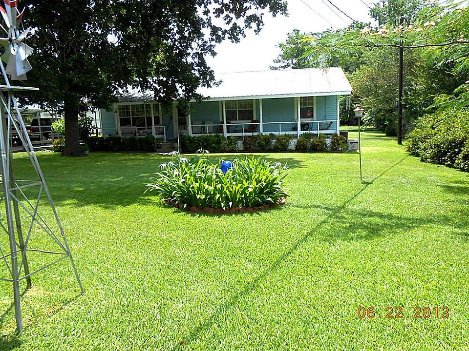 Clean/neat blue house on one acre, country atmosphere, quiet location. 2 bedroom, 2 bath home with open concept living, dining, kitchen areas. Spacious laundry room, good storage and back door to covered porch. Beautiful lawns enjoyed from covered porch across front of home. Water well 475 ft. deep. Covered double carport. Handicap access to front porch. 25'x35' metal storage/shop/hobby building.
