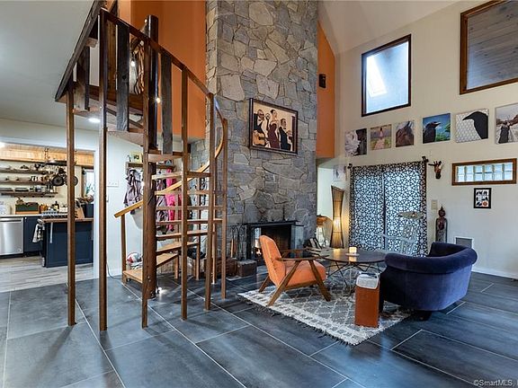 Don't miss the opportunity to own this one-of-a-kind 3 Bedroom 2.5 Bath contemporary nestled on a secluded 3.7-acre lot across from pristine West Hill Lake. Surrounded by town-maintained hiking trails, the home includes a renovated kidney shaped pool with salt-water system and fully fenced rear yard. New (2021 32' x 22' post and beam barn with a loft area, attached chicken coop, split rail paddock, room to clear a pasture, and an access road from the main driveway- perfect for the homesteader or gentleman farmer. The centerpiece of the home is a floor-to-ceiling double sided, field stone fireplace. Large living room features cathedral ceiling, a spiral staircase to the second-floor balcony area, Italian porcelain tile flooring, sliders to the three-season sunroom, and sliders to the new blue cobblestone patio. The elegant tile continues through the bright and sunny open floor plan kitchen, boasting open country shelving, white quartz counter tops, stainless steel appliances, gas stove and breakfast bar. The dining area includes fireplace with post and beam mantle, sliding doors, and access to patio and backyard. The first floor includes an office with a separate exit that shares a half bath with washer/dryer. The second floor includes a large master bedroom with remodeled full bath, subway tile shower, open-air soaking tub and field stone fireplace. There are two other bedrooms, a full bath and an additional studio space. A truly private oasis just waiting to be enjoyed