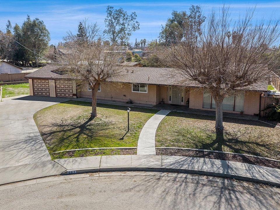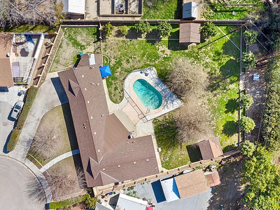 Hard to find hidden gem! Centrally located on a cul-de-sac, this beautiful HALF ACRE property with city amenities and tons of updates has so much to offer! The airy, open-concept living, dining and kitchen area is the perfect place to gather with friends and family. This gorgeous home has a functional layout, updated kitchen, features dual master suites and the completely updated master bathroom spa retreat will not go unnoticed! Updated flooring, newer roof, crown molding, baseboard, paint and tons of storage. Outdoor living space is in no short supply with oversized green area, a pool for hot summer days, fruit trees, plus 2 storage sheds. Make your appointment to see it today! Bed/bath count differ from tax records.