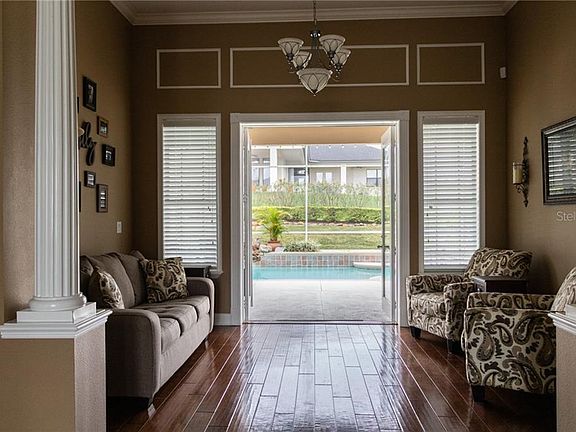 Stunning home in Crews Lake Hills awaits your arrival! Located in south Lakeland this 4 bedroom 2.5 bath home has been meticulously maintained. As you enter the home, the living room has a fantastic view of the solar heated pool. Separate dining has plenty of space for large family gatherings. The kitchen has new cabinetry with soft close drawers and overlooks the family and dinette rooms. Split bedroom plan- the versatile 4th bedroom is currently being used as an office, and the large master bedroom and bath will fulfill all your needs- Walk in closets, garden tub, his and her sinks and access to the pool. Inside utility room is over sized and has plenty of room for all your extras. The over sized garage will hold 2 vehicles comfortably and much more. After working those long days it will be perfect to come home and relax in this pool! The sounds of the waterfall are enough to make all your troubles disappear. Enjoy the solar heated pool with your family year round. The screened lanai has extra space to set up tables or grill out or maybe bask in the sun. Home has new paint inside and outside, new pool screen, two new AC units with UV lights ( 14 seer) and new kitchen appliances. Don't miss out on this beautiful home located near shopping, medical facilities and the Polk Parkway for an easy commute to Tampa or Orlando!