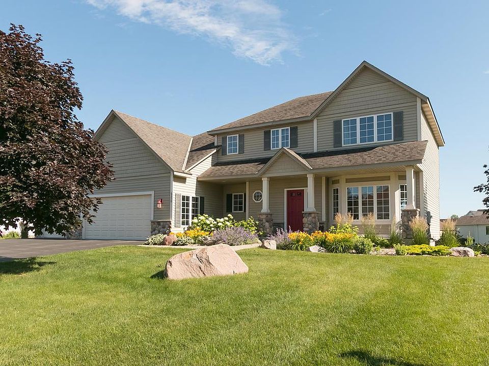 SPACIOUS COTTAGE GROVE TWO-STORY HOME FEATURES A LARGE, CORNER LOT, OVER 2200 ABOVE GROUND SQ FT, 4-BR'S ON UPPER LEVEL PLUS LOFT AREA, NEWER PAINT AND CARPET, QUARTZ KITCHEN COUNTERS AND STAINLESS STEEL APPLIANCES, GORGEOUS LANDSCAPING, A WALKOUT BASEMENT READY TO BE FINISHED, ISD-833 SCHOOLS & MORE!! FORMER MODEL HOME!!