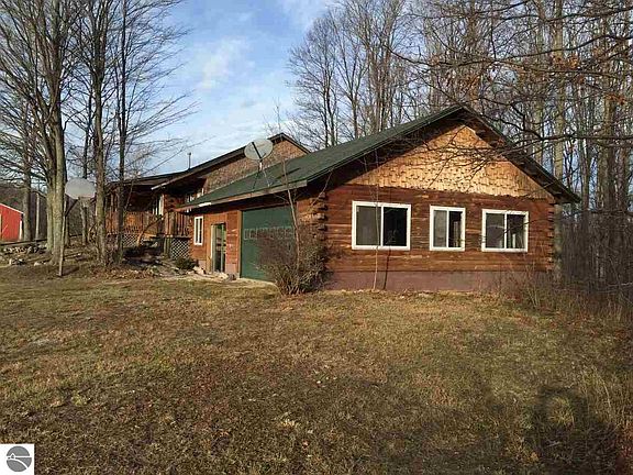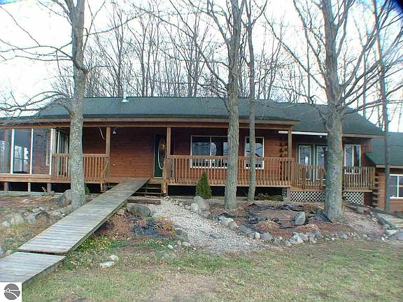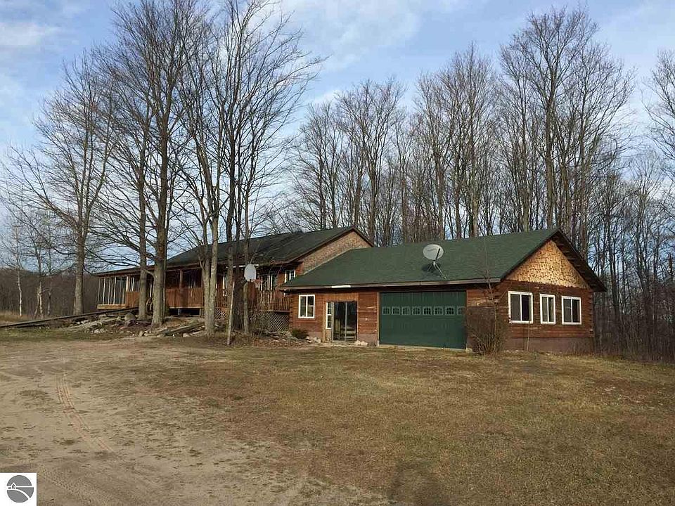 Large custom ranch on 35+ acres. This home has a large attached garage, with doors for 2 cars, but room for more, or for your workshop. The wrap-around porch accents the fabulous views from the home: wide open hills on the front and game-filled woods on the rear. The property features two small outbuildings, plus a 32' x 32' pole building and an elevated game viewing shed. The home is finished in pine, with a true northern Michigan feel. The full basement includes 3 bedrooms, a bathroom, laundry area and a large family room with space for a woodstove. This is a BANK OWNED FORECLOSURE, NOT a short sale. Easy, quick purchase process. $1,000 or 1%, whichever is greater, min. Earnest Money Deposit w/offer required. Subject to Bank Addendum. Property is sold as is, with no disclosures. Measurements are approximate. Please note: This property cannot be shown until further notice. We are working on getting resolution to an access problem. Thank you.
