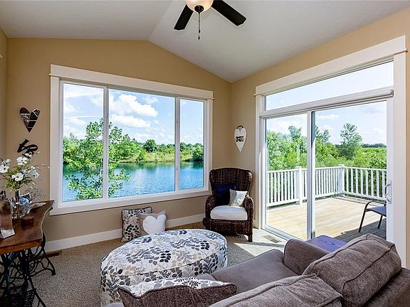 Imagine waking up every morning to a phenomenal lake view. Want more? This unique townhome has much to offer. Enjoy the beautiful vaulted ceilings, open floor plan great for entertaining & plantation shutters. The main level has a huge living room w/fireplace, dining area, eat-in kitchen w/double gas oven, all stainless steel appliances, laundry, two bedrooms & two full baths including the master suite w/jet tub & dual vanity sinks. The finished walk-out lower level is complete w/a family room, third bedroom, another full bath & plenty of storage. Spend time relaxing in the all season room or on the deck enjoying view with no neighbors backing up to you. The attached three car garage will keep your vehicles, toys & tools safe from the elements. Sunrise Pointe is a quiet neighborhood off the beaten path, but still minutes away from the nearby bypass giving access to the entire metro area. Come check out the serenity of this private end unit today & make it your next home sweet home.