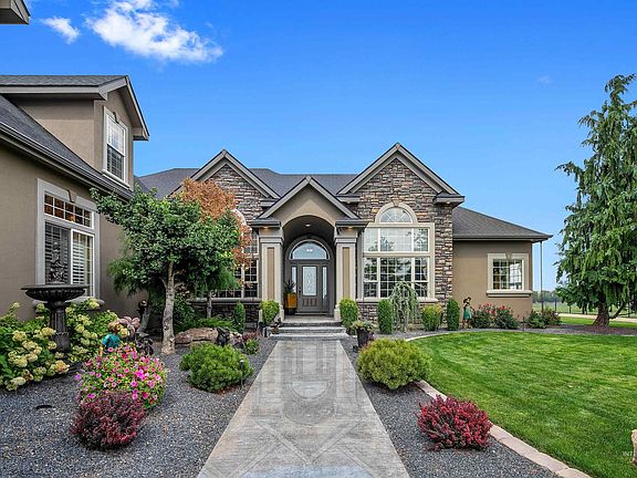 Amazing 5 acre residentail retreat with incredible 360 views of the Treasure Valley. This single level home w/bonus, 4bed 3.5+ baths has been meticulousy taken care of and it shows throughout. Yard and pasture are fully fenced w/auto sprinklers. Extensive exterior landscaping & lighting showcases the beautiful yard,water feature & salt water pool. BBQ area Large greenhouse w/water system. The beautiful open kitchen boasts Alder cabinets, island, wolf & bosch appliances and large pantry. The marvelous primary suite with foyer offers jetted tub & lg walk in shower. The lg 2044sq ft. shop is fully insulated, painted and includes a full bath, central vac, built in cabinets and work areas, propane heat makes it ready for any project. Enjoy the sunsets while BBQing under the covered patio and relaxing by the 42x22 ft heated saltpool. Large Greenhouse There is ample room on this 5 acres for your horses or other livestock to roam while you enjoy the convience of the water trough and livestock pens at back property.
