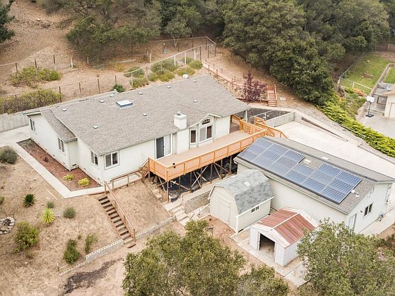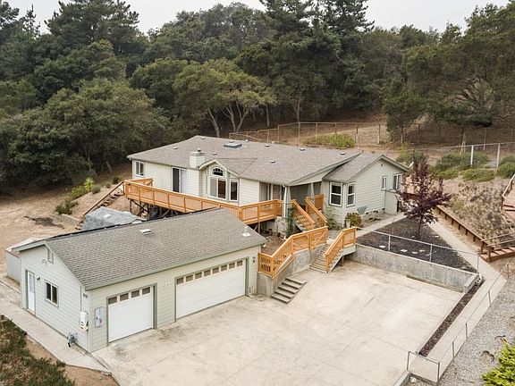 Enjoy this peaceful country 2 1/2 acre property nestled on a private road surrounded by Oaks and secluded private driveway. A beautiful manufactured Fuqua home with a lovely deck overlooking mountain views. The home consists of 4 bedroom, 2 baths, Master suite has a jacuzzi tub. Living room has a open floor plan with fireplace and large Bay windows overlooking deck. High Beam ceilings and skylights modern Stainless Steel Whirlpool appliances. All Brand New flooring throughout, including freshly painted cabinets and vanity in master bathroom and storage cabinets. Large 3 car garage and California shed and additional storage behind garage. There is a fenced area for garden. Close to shopping an access to Hwy 101 to San Jose or South to Monterey Peninsula. Don't miss you chance to see what this beautiful country property has to offer.