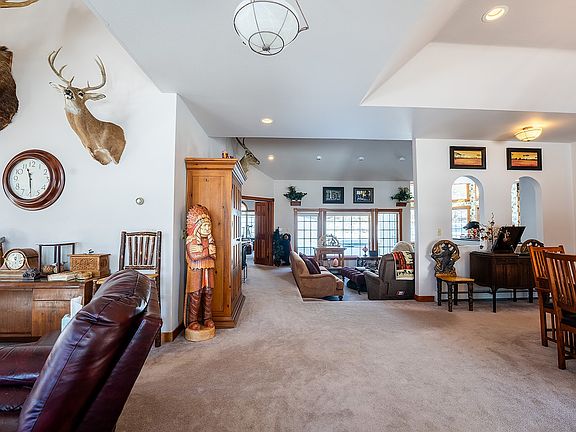 This is the Montana home you've been waiting for! 3.65 acres of private serenity await. NO COVENANTS!! This beautiful and well-kept single level home has it all. Open floor plan with vaulted ceilings and lots of room to entertain. As you enter you will find two living areas as well as a formal dining space with wet bar and wine cabinet. The spacious kitchen boasts cherry wood cabinets, ample counter space, and prep sink.