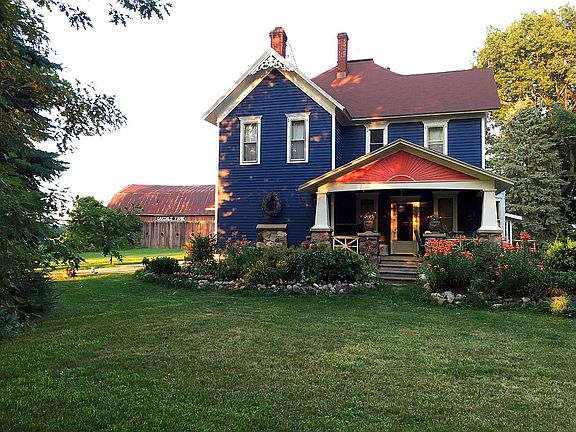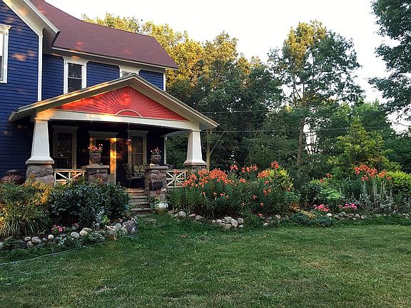 Historical farmhouse with beautiful craftsman details and antique woodwork on park-like 3 acres in a private setting. Geothermal heating and central air conditioning, water softener, updated kitchen and bathrooms.