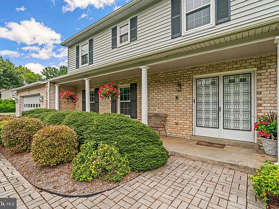 Elegant Colonial offering 2,189 square feet with 4 bedrooms, 2 full baths, 2 half baths, and a 2-car garage nestled on a full acre in sought-after Highland, lovingly maintained by the original owners. This residence makes a striking first impression with its gorgeous curb appeal—lush landscaping, a stone retaining wall, an expansive front yard, and a long private driveway with ample parking. A shrub-lined stone walkway leads to the welcoming front porch and double front doors accented by a partial brick façade. Inside, the foyer opens to a bright formal living room and sliding doors to the deck. The layout flows seamlessly into the formal dining room, highlighted by gleaming hardwood floors, a sparkling chandelier, and a chair railing. The spacious eat-in kitchen features select stainless steel appliances, double ovens, abundant cabinetry and counter space, and a cozy breakfast area with access to the backyard and a laundry room with garage access. Completing the main level are two convenient powder rooms and a family room adorned with hardwood floors and a stunning stone-surround gas fireplace. Upstairs, discover four generously sized bedrooms and two full bathrooms, including the private primary suite with its own bath. The walk-up lower level offers excellent storage or the opportunity to customize for future living space. Outdoor living is equally inviting, with a wood deck overlooking the expansive, level backyard, beautifully landscaped and bordered by mature trees for shade and privacy.