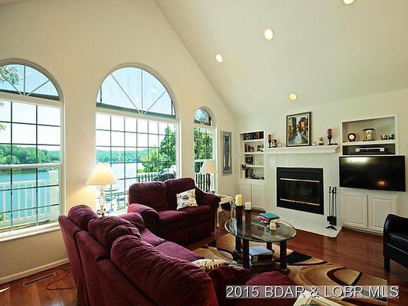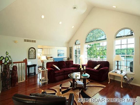 Fabulous lake house, with southern exposure,in the heart of Osage Beach with a fabulous view! Location,location, location! Prized neighborhood with community swimming pool,water and sewer.Great set up with main level living,vaulted ceilings and windows galore, and beautiful new granite and stainless appliances for kitchen!One small bedroom is used as an office. There is a lower level bedroom/exercise room lakeside that has a nice window, but no closet and is counted as the fifth bedroom.Two well dock with swim platform and boat hoist included.Room for a cruiser dock if needed. Additional parking between the house & road.Within walking distance to Michael's Steak Chalet.