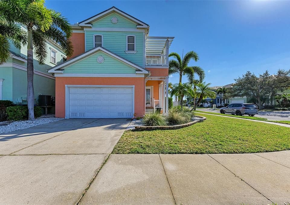 One or more photo(s) has been virtually staged. MOTIVATED SELLER! Discover this beautiful 2-story 3 bedroom, 3.5 bathroom 2,026 SQFT home featuring an office/playroom in a charming Key West style neighborhood. This home has vinyl flooring throughout with a modern appeal. Enjoy the living room with your built in fireplace during the chilly winter months. The main floor is designed for entertaining with an open concept kitchen and living room. Upstairs you will find the 3 spacious bedrooms with vinyl floors throughout. The primary bedroom has its own private balcony and the other two bedrooms have a joining balcony. The master bathroom has a large walk in shower, tub and a double sink vanity. As you walk back downstairs you will find yourself walking into the backyard oasis. An in-ground heated pool, outdoor bar with a grill and mini fridge, and a low maintenance turf backyard. This is a perfect backyard for entertaining year around. Located less than 1/2 mile walk/drive to Apollo Beach elementary, and 2 mile drive to Waterset Charter School K-8. Just a few minutes from the Apollo Beach Nature preserve and the Manatee viewing center! There is NO CDD and the HOA includes the lawn maintenance! Don't miss out, make this property yours today.