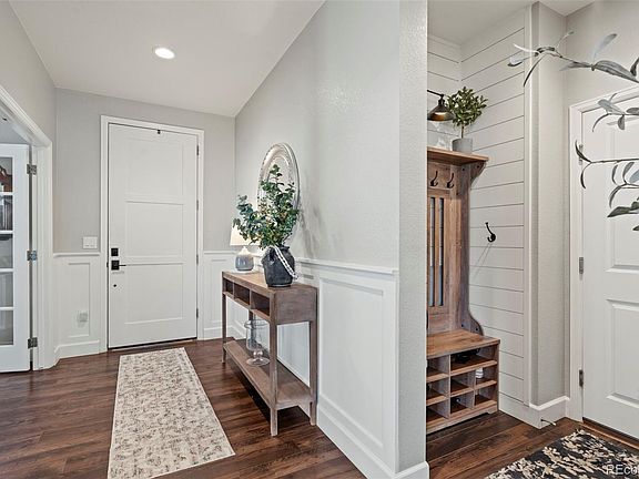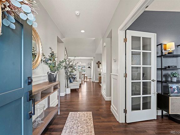 Exquisite Timberline Residence with Premium Upgrades and Location Welcome to this stunning 5-bedroom, 4-bathroom residence, perfectly positioned on a private, nearly quarter-acre lot in the desirable Timberline Neighborhood of Castle Pines. Backed by open space and featuring mature landscaping, this home offers a tranquil sanctuary and an exceptional setting for entertaining.This property showcases over $100,000 in seller upgrades, including elegant wainscoting, a state-of-the-art radon mitigation system, and a completely finished walk-out basement. The professionally designed backyard is an entertainer's dream, featuring a meticulously built extended patio and a covered sitting area. The gourmet kitchen has been enhanced with upgraded counters and a modern sink, complementing the GE Profile stainless steel appliances and oversized island. The main floor boasts an open-concept design that seamlessly connects the living room, dining room, and kitchen. Abundant natural light streams through four large windows, illuminating the space. A private main-floor office provides flexibility, serving as a potential sixth non-conforming bedroom or a dedicated play area. The home is also equipped with a smart Nest thermostat for modern comfort and efficiency. Upstairs, the second level hosts the primary suite, which includes a beautifully tiled bathroom, with dual sinks, and an oversized shower, along with three additional bedrooms, a convenient laundry room, and a versatile loft space. The fully finished basement expands the living area with a spacious living room, a wet bar complete with a sink and beverage fridge, a bonus room, a bedroom, and a full bathroom. Ample storage is available in the dedicated unfinished storage room. Additional features include a 3-car tandem garage and a highly private backyard with mature trees, creating a serene and secluded environment backing directly onto open space.