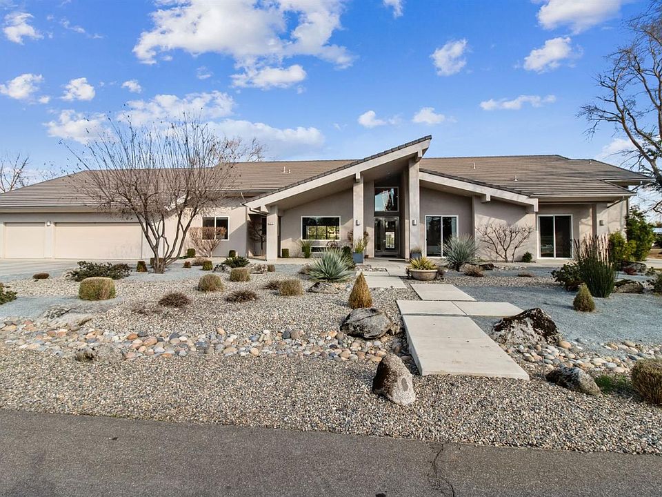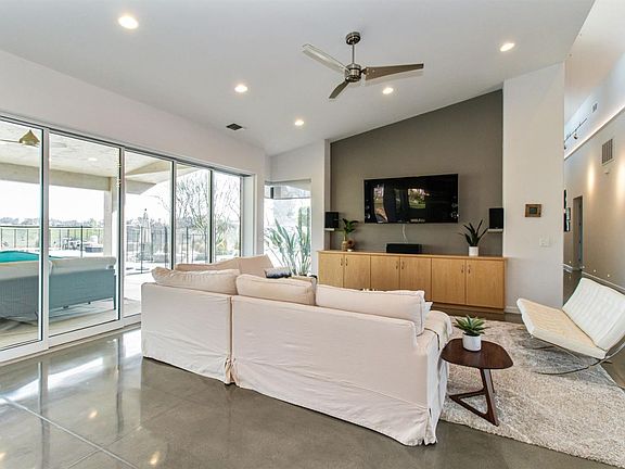 Stunning modern home on 2.23 acres w/OWNED SOLAR! 3BR + extra flex rm that can be a sm 4th BR or an office. Towering ceilings with wall to wall windows with amazing views of the backyard and pool. Great room w/built-in entertainment Ctr has surround sound & opens to the kitchen and bar area. Kitchen features Wolf cooktop/oven, Miele coffee maker, 2 dishwashers and integrated subzero fridge. 13 ft long Island seats 7-8. The bar room has a beautiful marble countertop, wine fridge & dishwasher and can be another eating area. Formal dining rm hasbuilt-in china cabinet. Remote controlled transom windows in the hallway. Owners ensuite is comparable to a resort spa with the soaking tub, walk-in shower, marble counters and ambient heated floors. Amenities include large pool/spa/fire pit, central vac, utility/pantrycloset, metal garage cabinets, fruit tree and 3 car garage. Seeattached list. Make an appointment today for your private tour.