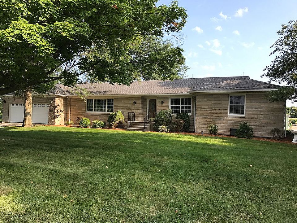 Bedford stone house in excellent condition with 80% hardwood floors. Full basement, 65% of basement is finished. Multiple out buildings on 15 acres. New roof in 2014. Well landscaped.