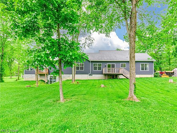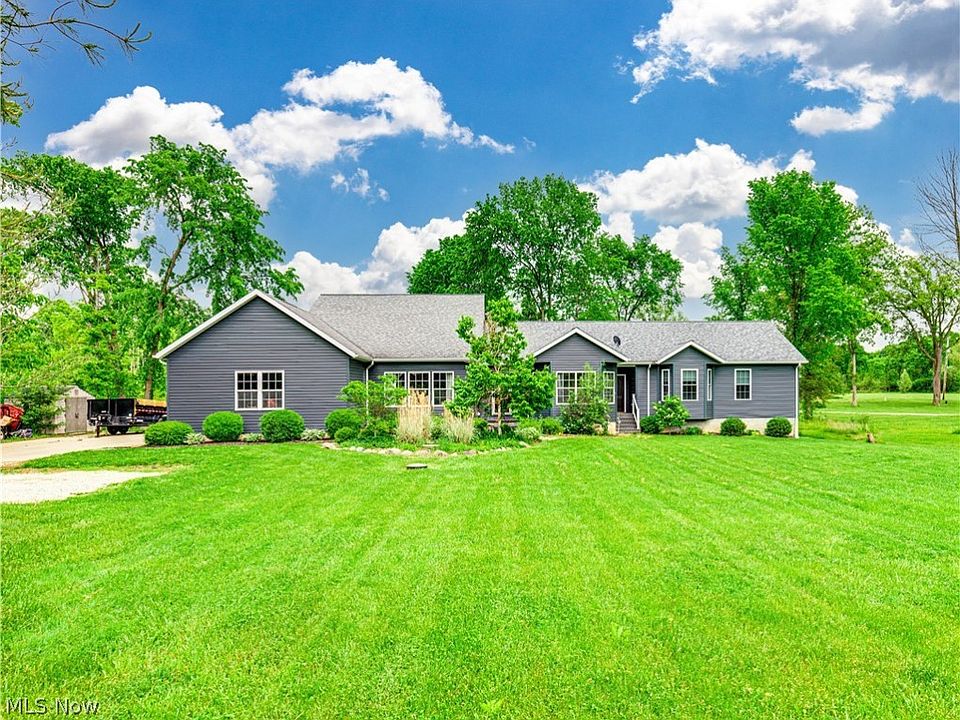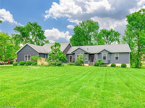 Welcome home to this natural oasis on just over 5 acres in Sharon Township. Upon entry, you are greeted by 9-foot ceilings and abundant natural light. This open-concept ranch has been fully renovated with beautiful modern features and fresh paint throughout. The stunning kitchen with views of the wooded lot has brand new S/S appliances, butcher block countertops, grey subway tile backsplash, plenty of cabinets and a slider to the deck overlooking the private 1/4 acre pond. The master suite boasts large closets, new flooring, and recently renovated en suite with new double vanities, tile floor, walk-in shower and soaking tub. On the opposite side of the house are two large bedrooms and a renovated full bath. Recently added 1000 sq ft. in-law suite showcases a private entrance, separate laundry, fully equipped kitchen, gas fireplace, beautiful full bathroom, one bedroom and walk-in closet with barn doors. Walk-out basement is partially finished adding an additional 1800 sq ft. of living space and is plumbed and framed for a 4th full bath. Highland Schools. Other updates include A/C '20, Furnace '20, roof '20, siding '20 and all new flooring throughout.