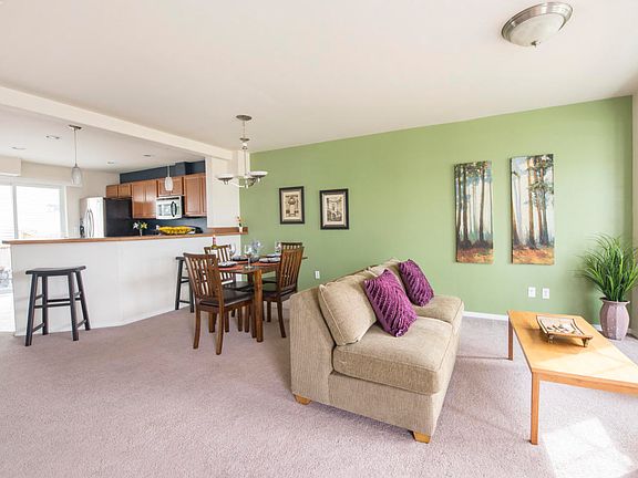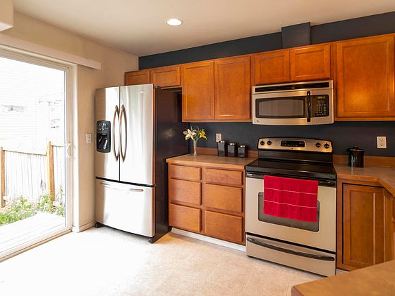 3 bedrooms and a fenced yard five minutes from JBER & Tikahtnu! Open living/kitchen boasts abundant natural light & tasteful upgrades, including contemporary colors, cherry cabinetry, and stainless steel appliances. All 3 beds & a full bath upstairs, half bath down. Two designated parking spots! steps from your front door, plus plenty of guest parking. Be on base in five minutes. Excellent value