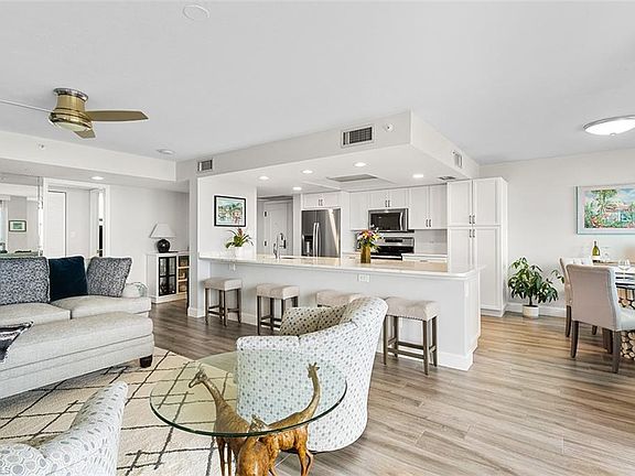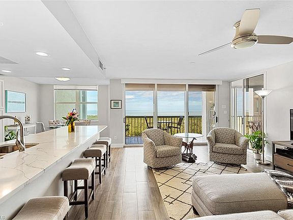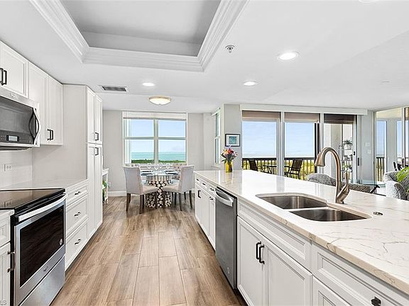 Stunning views of the Gulf of Mexico from one of Pelican Bay’s premier high-rise condominiums, St. Marissa. Nestled on the 12th floor, this pristine residence was tastefully remodeled in 2018 featuring an open floor plan, expanded living area, tile flooring, modernized kitchen with custom cabinetry, quartz countertops, stainless steel appliances and hurricane impact glass throughout. The thoughtfully updated bathrooms feature new vanities, custom mirrors and quartz countertops. St. Marissa offers 24/7 security, guard gate, on-site management, a fully equipped fitness room, pool, spa, grilling area, resident lounge and two guest suites. Residence 1203 includes a conveniently located covered parking space near the north building entrance and a generously sized secured storage room on the unit floor. Pelican Bay is renowned for its premier Naples location and amenity-rich lifestyle. Residents enjoy access to miles of walking and nature paths, two private beachfront restaurants. a state-of-the-art fitness center, wellness studio, tennis club, community center and a range of activities for the sporting enthusiast. Visit the virtual video attached.