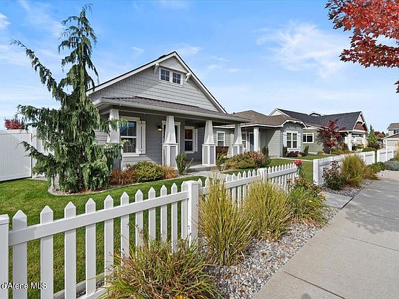 Charming Coeur d'Alene Place Single Level Home - This 2-Bedroom, 2-Bath home offers vaulted ceilings, ceiling fans, A/C, gas fireplace, kitchen island, pantry, granite counters with tile backsplashes, office or Flex Space, and a primary en-suite bedroom with walk-in closet with custom built-ins. A welcoming covered porch (porch swing included), spa (included), efficient and livable floor plan that you will love! Canfield Mountain views from the front of the home, paved alley access to the back of home. Alley loaded garages make for a welcoming, aesthetically pleasing neighborhood. Community garden directly behind the home! Enjoy miles of trails, parks, and greenspace in this master planned, centrally located community.