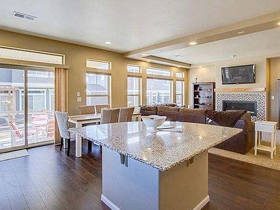 Beautiful 2 year old home in Banning Lewis. This 4 bed, 3.5 bath, 3 car garage boasts lots of upgrades from the builder. The upstairs has 2 large guest rooms and laundry on the same floor as the the huge master bedroom. Amenities to the Master are a large walk in closet and large walk in shower along with a dual vanity. Granite is everywhere from the master bathroom to the kitchen. Upgraded kitchen cabinets and flooring along with stainless Steel Appliances, look amazing with this open a spacious main level. The upgraded large covered patio is ideal for grilling and having friends over. Very cool contemporary fireplace give the living room a very clean modern look. The high 10 foot ceilings keep it light and airy in the basement. This is a must see now! Don't wait to build! All of the landscaping is done as well as thousands spent on the interior blinds!