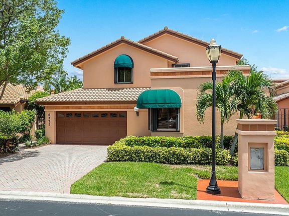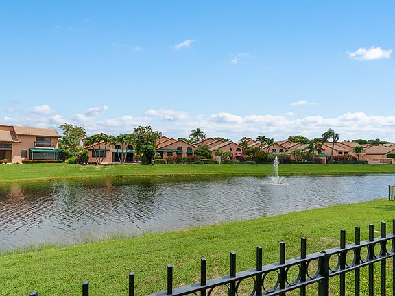 Dramatic and spacious two-story, 3 bedroom home with panoramic lake view. Large sun drenched living room opens to oversized patio with spa overlooking the beautiful lake vista. Kitchen opens to an extended family room which also has beautiful view of the large patio and lake. Palatial primary suite on first floor with large bathroom complete with updated vanity and large walk in shower. Two bedrooms plus a loft on second floor. The spectacular, spacious patio is perfect for entertaining family and friends or just lounging in the beautiful South Florida sun while overlooking the stunning water view. Accordion shutters and 2 garage complete this home.