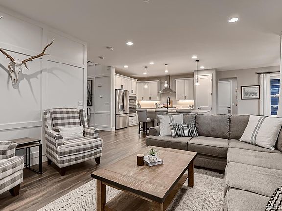 Better than new MOVE-IN READY Emerson-plan Shea home in The Canyons with INCREDIBLE location and upgrades! MOUNTAIN VIEWS galore, accross from Ramble Park and Playground, fully landscaped with no rear neighbors and elevated lot. Custom built-ins in the owners closet, board and batton accent walls and mudroom built-ins, window blinds throughout. Upon entry, this home boasts 2-story ceilings, custom trim wall, open railing and water-resistent laminate wood floors throughout the entire main level. The bright and open kitchen features white shaker cabinets with soft close doors and drawers, white quartz countertops, matte black hardware, pantry and a large center island for entertaining. The Family room is filled with light from the extensive windows and offers warmth from the gas fireplace with modern stacked stone and wooden accent wall. Enjoy the colorful sunrises on the rear covered patio or host a diner party in the oversized dining area. Upstairs you'll find the Owners bedroom with huge windows and private bathroom featuring a massive walk-in shower and custom closet! You'll also find 3 additional bedrooms, one with an ensuite bath, upstairs laundry room with utility sink and cabinets, and a secluded loft perfect for a play area or separate TV space. The Canyons offers The Exchange Coffeehouse, a pool, trails, playground (across the street from the house!) and many more amenities to come! Come see this incredible home before it's gone! Great value and ready NOW!