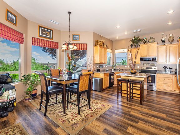 This home is the very popular Sequoia model built by North Sky with a 3 car garage. Beautiful curb appeal with corner lot and views. Exceptional floor plan with split 4 bedrooms. Very light and open. 2nd & 3rd bedrooms also walk in closets. 4th bedroom ideal for office/den. The home was updated several months ago with new interior paint, granite through out, appliances, sinks, plus more. Neutral colors throughout. over sized three car garage with epoxy floor. Rear patio cover and extended flagstone for entertaining. There is also a separate storage shed or ideal for small shop. Also, large grass area for kids and pets. The refrigerator, washer and dryer, plus big screen TV and cabinet in living room convey. Located in Granville with easy access to shopping, restaurants, medical.