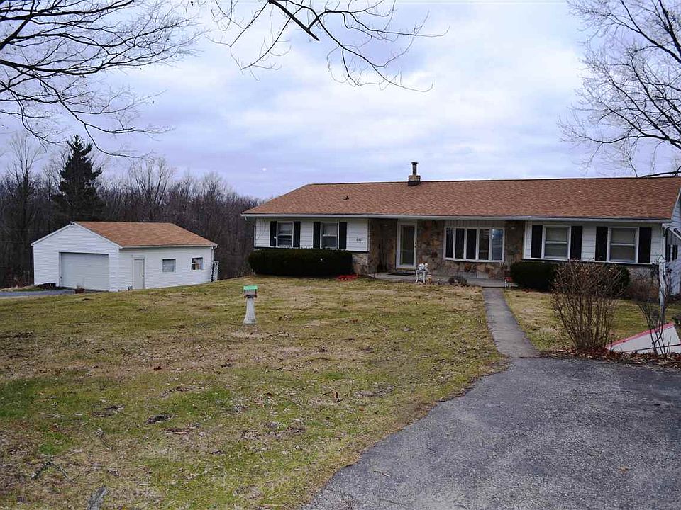 Lovely 4 bedroom ranch located on beautiful 2.8 acre lot. Entering the home you will find a large living room opening up to the dining room with access via french doors to the two tier back deck, great for entertaining. The kitchen has tons of counter space and large island plus all appliances stay with home. A bonus is a large family room off from kitchen for added family space. Down the hall are 3 Large bedrooms with hall bath and spacious master suite with private bath. Outside is a large detached garage with new garage door and opener and tons of storage. The home has a new roof and freshly painted throughout.