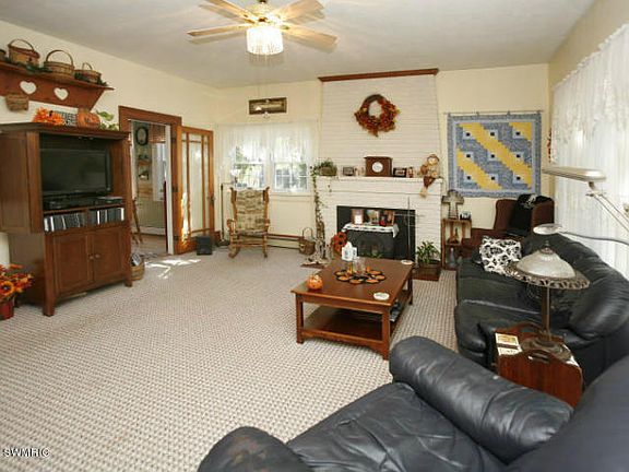 Lovely turn of the century farm house. This home is full of charm and character featuring beautiful original woodwork,hardwood floors, fireplace in living room, formal dining room, breakfast nook off country kitchen, built ins thru out, 3 season updated front porch, main floor laundry, newer laminate flooring in kitchen, replacement windows and metal roof. 3 car garage, outside wood furnace add on, garden area, fruit trees on 1.87 acre lot. This home has been meticulously cared for and it shows.