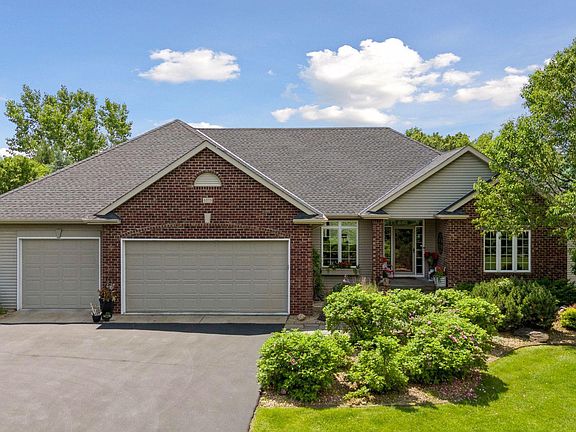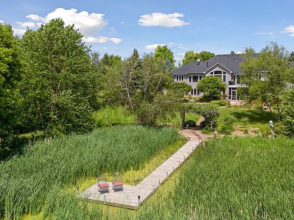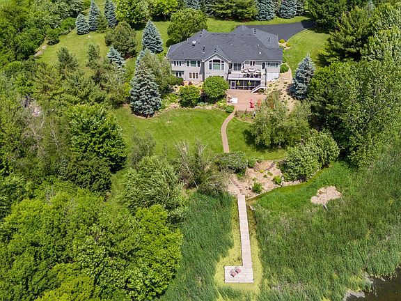 Truly splendid eye-catching walk-out rambler on private 3.8 acres! Picturesque pond setting creates oasis of serenity. Drive in under canopy of mature trees. Casual elegance throughout this captivating home! Overlook yard, gardens, patio and pond at every turn! Bluestone walkway to covered front porch. Be captivated by hardwood floors, cherry cabinetry/built-ins, gas fplc, volume ceiling, stunning picture window views. Open great room style! Primary bedroom suite heated floors, jetted tub. Vaulted office and sunroom. Kitchen boasting center island, walk-in pantry, granite counters, stainless appliances, tiled backsplash and abundance of cabinetry. Generous mudroom and laundry. Entertainment sized deck! Walkout lower-level family room has 3sided gas fplc w/full wall window views of patio garden and cascading water feature. Positively serene! Three bedrooms, workout area, flex room, game area, wet bar and wine closet! Relax in enormous screen porch! 1000 Sq ft heated gar. ISD194.