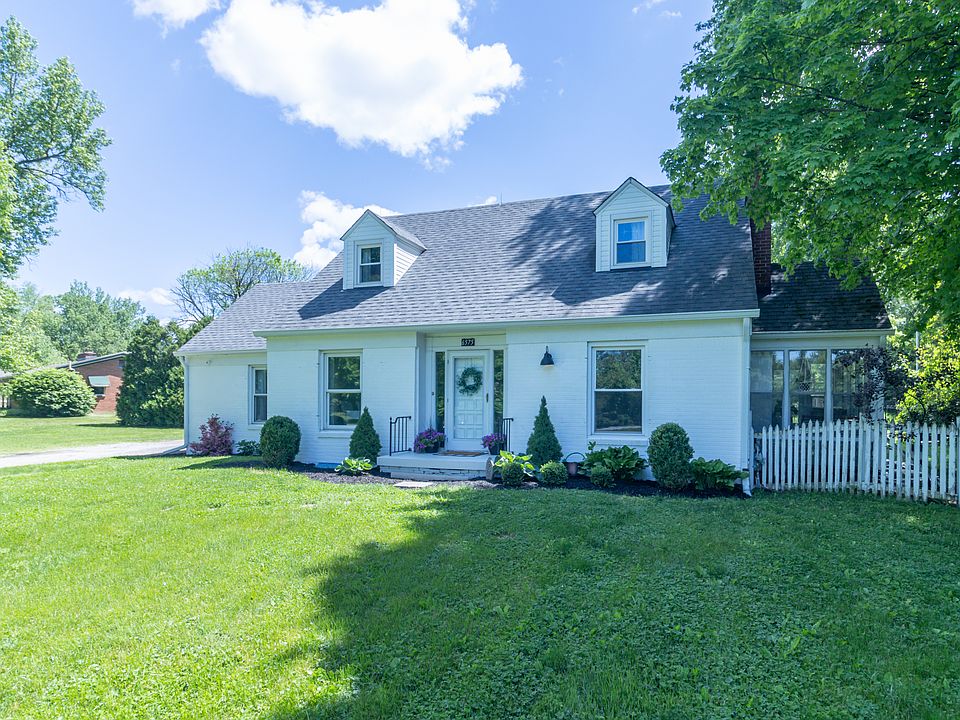 Charming cape cod on a wooded 1.75 acres and a pool in Washington Township. Modern farmhouse style with natural hardwood floors, cozy fireplace in the living room w/nice side screened porch for relaxing in the summer breeze. Family room w/staircase to one of the bedroms that currently is a home office. The main level guest bedroom is also office#2 in the 4BR layout. Breakfast room and formal dining room. Basement offers great space for indoor games/weight room, and the laundry facilities.