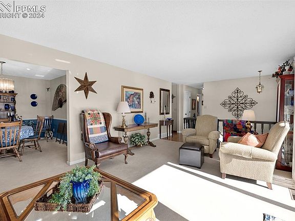 Very Nice, Very Clean 4 Bedroom Home Located In The Golden Hills Area Of Rockrimmon. With All The Trees Around Area It Has The Feel Of Living In The Mountains! Home Has 4 Bedrooms, 3 Bathrooms & A 30 x 24 3 Car Garage. The Carpeted Living Room Features A Patio Door Surrounded By Windows And It Opens To A 5 x 21 Ft. Balcony In Front Where You Can Enjoy Neighborhood Views & Possibly Deer That Frequent This Area! The Kitchen Features An Oak Floor, Ceiling Fan, A Casual Dining Area, Lots Of Room In Pantry And The Cabinet Fronts Are Beautiful! All Kitchen Appliances Stay. Home Has 2 Family Rooms. The Formal Dining Room Is Just Off The Kitchen. The Main Level Carpeted Family Room Enjoys A Brick Surrounded Wood Burning Fireplace, Windows To Enjoy Back Yard Views And Door To Great Deck In Back. There Are 3 Bedrooms On The Main Level Are All Carpeted. The Spacious Primary Bedroom Features A Ceiling Fan, And Adjoining Primary Bath & Walk-In Closet. The Other 2 Bedrooms Are A Very Good Size! The Lower Level Features The 2nd Family Room, 3rd Bathroom, Laundry & Utility Room. This Carpeted Family Room Also Enjoys A Wood Burning Fireplace! There Are Bookshelves At One End And Those Are Also Included! The Deck In Back Is So Nice! It's Made Using An Upscale Brazilian Hardwood! Relax On That Deck And Just Enjoy Nature! Home Has A Humidifier, High Efficiency Furnace, Central Air, All New Pella Windows And Newer Roof Was Installed In 2022. It's Located On Just Over A 1/4 Acre Lot In A Peaceful Neighborhood. It's Not That Far From I-25 Where You Can Access Many Restaurants And Shopping!